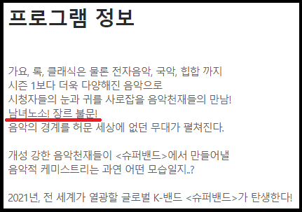 JTBC의 음악 경연 프로그램 '슈퍼밴드2'가 2021년 6월 21일 방송을 앞두고 있습니다. 슈퍼밴드1이 어느 정도 성과를 거두었기에 슈퍼밴드2에 대한 시청자들의 기대감도 높아진 상태입니다. 하지만 방영 전 참가자 모집기간인 1월부터 논란이 발생하였습니다. 어떠한 논란이 있었는지 알아보겠습니다.
